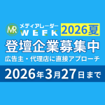 2026年1月20日 / Last updated : 2026年1月19日 sakusaku お知らせ 【エンプラなど広告主・代理店のリード獲得】登壇募集開始!広告・マーケ業界のオンラインセミナーイベント「メディアレーダーWEEK 2026 夏」 株式会社アイズ(所在地:東京都渋谷区、代表取締役社長:福島範幸、東証グロース:5242)が運営するNo.1*¹の広告業界のプラットフォーム「メディアレーダー」は、主催する「第22回 メディアレーダーWEEK 2026 夏 […]