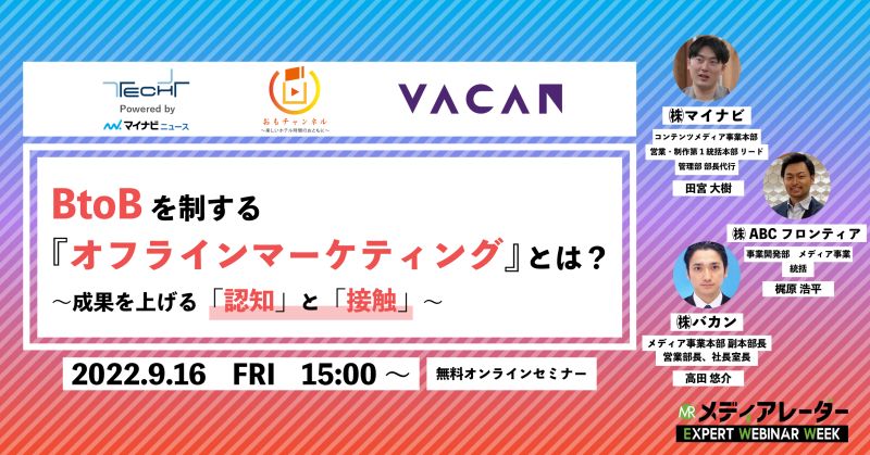 ・「BtoBを制する『オフラインマーケティング』とは?~成果を上げる「認知」と「接触」~ 」9月16日(金)15:00~