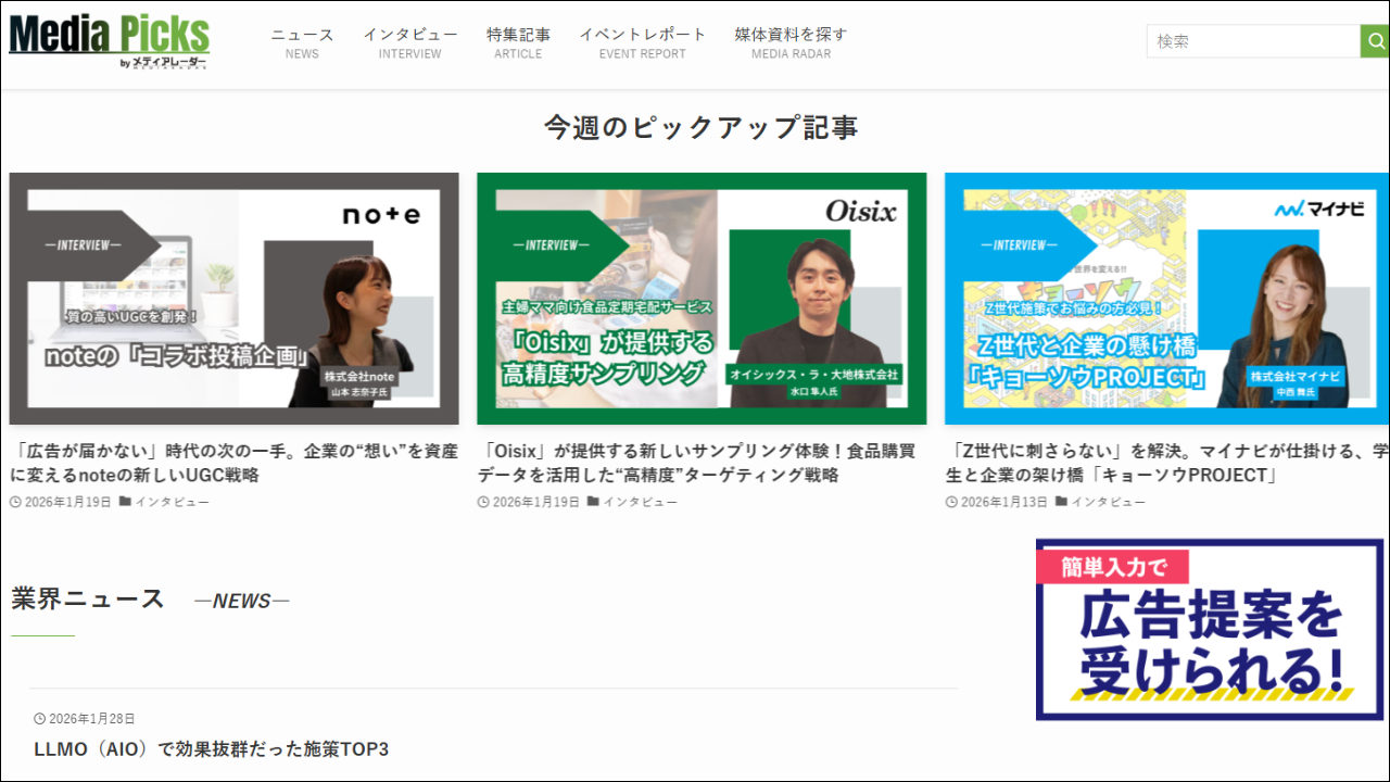 広告企画のヒントが集まる専門メディア「MediaPicks(メディアピックス)」