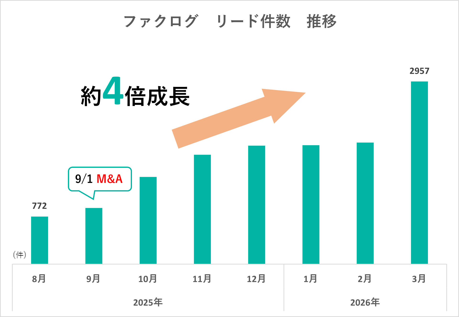 2025年9月1日のM&Aを機に、営業およびマーケティング活動を強化してまいりました。その結果、リード件数は7カ月で約4倍に成長しています。