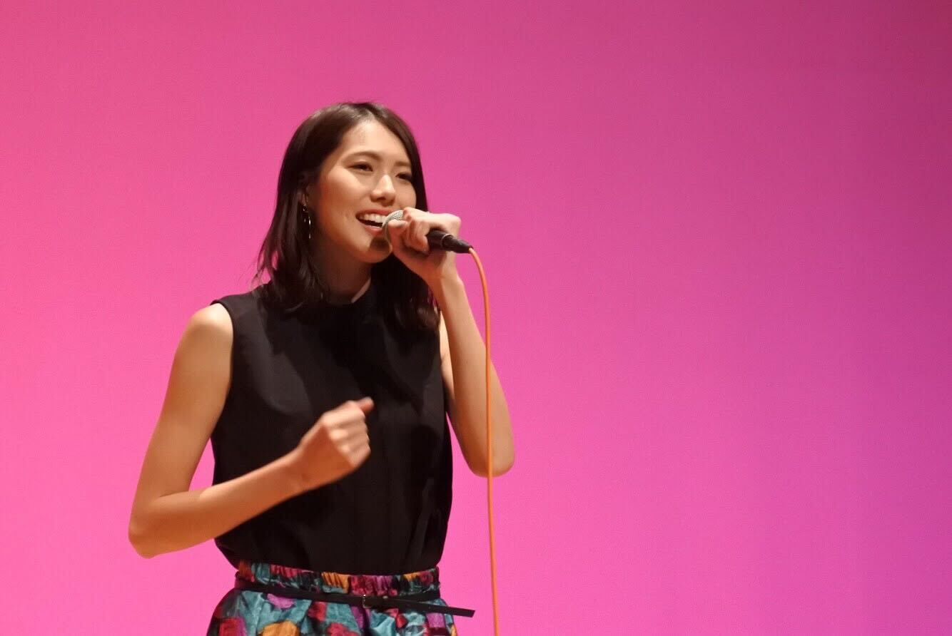 <アカペラサークルで出場したステージで歌うhiroさん>